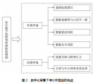 数字化背景下,审计质量控制面临的挑战主要来自外部环境和内部环境两个方面,见图2。