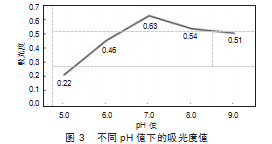 设计pH值分别为5.0、6.0、7.0、8.0、9.0,其他实验条件保持一致,实验结果如图3所示。