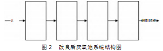 结合前人学者研究成果对传统AAO系统进行改良设计,主要针对厌氧池部分进行改进。改良后的厌氧池系统包括泥水混合系统、泥水分离系统以及填料系统三部分[4],具体情况如图2所示。