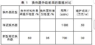 企业重点对换热器进行了升级,采用新型高效换热器。该换热器采用先进的传热材料,如石墨烯复合导热材料,其热导率相比传统铜材提高了约50%,能更高效地传导热量。独特的结构设计方面,采用了螺旋折流板与内展翅片管相结合的结构,使换热面积增加了35%,极大地提升了传热效率。实际运行数据显示,在处理相同流量和温度的物料时,传统换热器的能耗为1 000 kW·h,而新型高效换热器的能耗仅为700 kW·h,能耗降低了30%。从长期运行成本来看,传统换热器每年的维护费用约为50万元,新型换热器由于结构优化,不易结垢和腐蚀,维护成本降低至30万元,每年为企业节省维护成本20万元。换热器升级前后的数据对比,如表1所示。