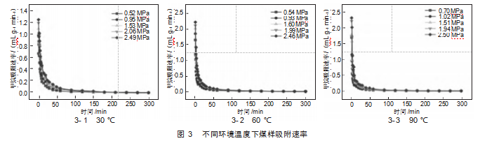对不同环境温度下煤样吸附速率分析,具体情况如图3所示。