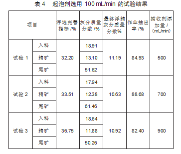 起泡剂选用100 mL/min,试验结果具体情况如表4所示。