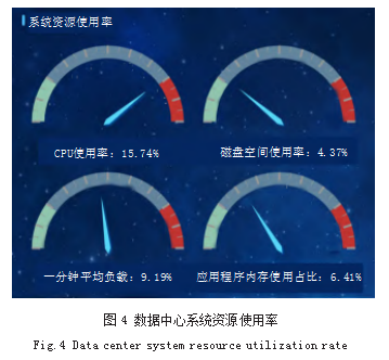 根据图4可知,最近一段时间内CPU的平均使用率为15.74%,磁盘空间使用率为4.37%,一分钟平均负载为9.19%,应用程序内存使用占比为6.41%。由数据可知,部分机器使用率较低,应合理分配资源,实现负载均衡,使部分高负载机器的应用转移到低负载区,以延长设备使用寿命以及减少设备维修情况。