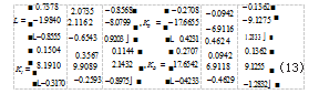 考虑含有3个节点的永磁同步电动机网络,应用MATLAB LMI工具箱,可求得观测器增益矩阵以及控制器增益矩阵如式(13)所示: