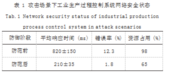 通过为期两周的对比测试,在施加多层级防御体系后,工业生产过程控制系统的网络稳定性大幅增强,在平均响应时间、错误率、资源占用率等方面均取得了良好效果,证明了网络安全防护措施的有效性。