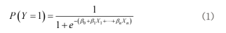 逻辑回归是人工智能领域内一种常见的统计方法,主要用于对分类问题进行统计,且对二分类问题较为适用。构建逻辑回归模型的过程中,事件发生概率为输出,取值范围0~1,模型参数阝表示结果发生与否的影响程度。逻辑回归的计算公式如式(1)所示: