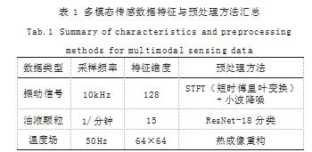 系统采集的多模态数据涵盖振动信号、油液颗粒图像与温度场分布三类典型信号,具备不同采样频率与特征维度。各类数据的预处理流程如表1所示。