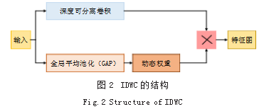 光照自适应深度可分离卷积(IDWC)是一种基于深度可分离卷积做出进一步改进的轻量化卷积,减少了模型的计算量和参数量。其基本结构如图2所示。