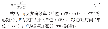 目前,采用AES-256等算法对传输文件进行加密是主流,一般情况下文件加密的效率是一项重要的考察指标,其计算公式如式(2)所示: