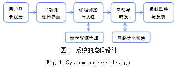 远程互动教育网络交互优化系统设计流程如下。首先,用户访问系统,通过已注册账号登录系统(未注册账号则进入账号注册);其次,在主页面选择各功能模块;再次,浏览课程,发现问题,在网上进行实时或非实时的交流互动;最后,转发后迭代升级。该系统通过网络优化模块进行优化,并通过监控系统在后台实时监控与反馈,最终提高交互的效果,系统的流程设计如图1所示。