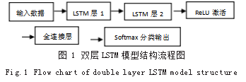 本模型设计采用双层LSTM结构(如图1所示),增强网络对时序信号复杂模式的表达能力。第一层LSTM聚焦提取低级时序特征,第二层进一步整合上下文信息。连接层引入ReLU激活函数以增强非线性表达,最后通过Softmax输出各故障类别的概率分布,适应多类别分类需求。该结构在保持较低计算复杂度的同时,兼顾了模型的泛化性能与预测精度。