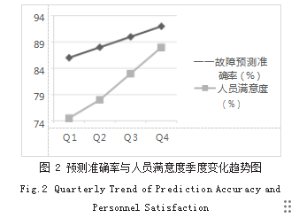 如图2所示,预测准确率和人员满意度逐季度提升,体现出模型及调度方案的持续优化。实际运维中,相较于传统人工调度,运维成本降低约18%,响应时间缩短22%,设备在线率和维护及时性显著提升。任务分配技能匹配度高,运维人员反馈任务安排合理、强度适中,满意度提升约15%。上述数据充分显示预测—调度联合模型具备良好的实用价值和推广潜力。