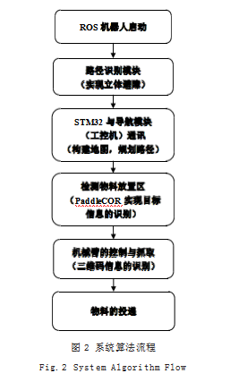 本文设计了一种可以自动化搬运、配送物料的机器人。利用互联网进行ROS及LEO机器人的对接,依靠传统的多传感器协同与新兴的人工智能算法的结合,为快递代取这一流程提供了新思路,其算法的流程如图2。