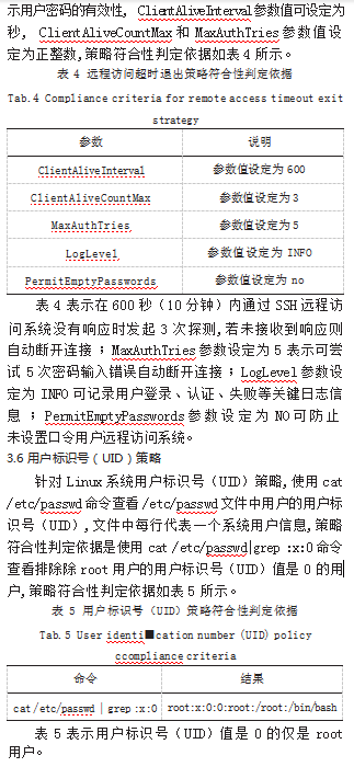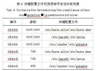 针对Linux系统配置文件权限策略,仅root用户可访问关键配置文件,策略符合性判定依据如表6所示。