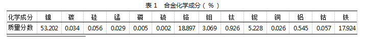 本试验原材料为GH4169镍基高温合金圆钢上面取下来的一段材料,规格为Φ35mm×300mm,其化学成分如表1所示。GH4169镍基高温合金以γ相为基体,主要强化相为γ'(Ni3(Al,Ti))和γ"(Ni3Nb),同时含有少量δ相(Ni3Nb)及碳化物,适用于高温高应力环境[1]。在热处理工艺中,需通过均匀化处理和固溶处理,消除加工过程中产生的残余应力及成分偏析。随后进行时效处理,以便调控析出相的形貌、尺寸及分布,进而优化材料性能;在腐蚀工艺中,需要选用合适的加工参数,除去基体材料,保证合金的尺寸精度达到标准。