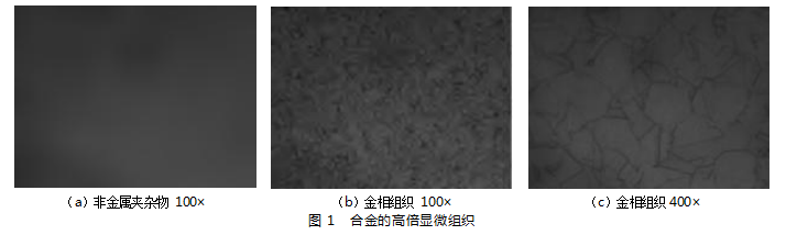 在718℃下进行1~32h的时效处理,发现合金晶粒未发生明显粗化。主要原因是在前期均匀化及固溶预处理阶段,晶界处已析出短棒状δ相(Ni3Nb),作为钉扎相可有效抑制后续时效过程中的晶界迁移,防止晶粒长大,进而提高了时效处理期间基体晶粒结构的稳定性。在短时效时间内,即≤16h,晶界δ相形态与数量的变化并不明显,原因在于718℃的时效温度较低,γ"相形核所需的孕育期较长。同时Nb、Al等强化元素的扩散速率低,导致γ"相在晶内缓慢析出并稳定存在。在该阶段,晶内均匀分布着圆盘状γ"相,尺寸为30~50nm,少量针状δ相散落于晶内;在长时效时间内,即达到32h,晶界δ相呈现出数量增加、长度延伸的特点,表明基体中γ"相开始向δ相转变。晶内γ"相尺寸增大至40~110nm,形状由圆盘状向短棒状过渡,均匀性下降[4]。综合来看,16h时效处理的效果最好,γ"相的高密度析出可强化合金,且尺寸处于强化峰值范围,能有效提升材料强度。如图1所示,金相检测结果显示合金的为奥氏体单相组织,晶粒度评为5.0级,非金属夹杂物含量级别评为A0.5、B1.5、C0.5、D0.5级。