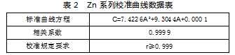 经验证,按本方法所得标准曲线为二阶曲线,曲线的相关系数可达0.999 9,符合标准方法要求的≥0.999,表明该方法下对无干扰物质时锌含量的测定效果很好。