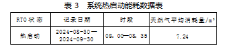 24年8月30日—24年9月30日期间,每日对RTO热启动过程中的天然气消耗情况进行了记录,结果如表3:
