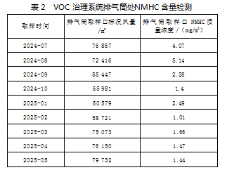 本文对该VOC治理系统的治理效果持续跟踪,收集了自24年7月—25年5月共计9份检测报告。检测结果如表2: