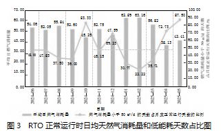剔除天然气使用异常天数后,日天然气消耗量在30~70 m3/d的总天数为230 d,占比为82%,为RTO天然气使用量最主要的区间。其中: