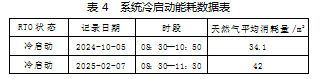 24年10月5日,25年2月7日,分别两次对RTO冷启动消耗的天然气情况进行了记录,结果如表4: