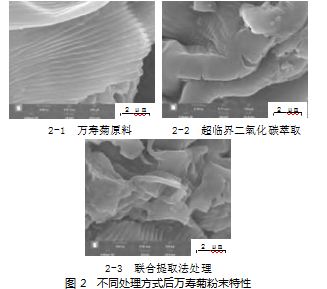 为了深入研究在采用联合提取法情况下叶黄素提取率大幅提升的原因,对采用不同处理方法后的万寿菊粉末特性进行研究,结果如图2所示。