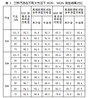 1我国现行汽油辛烷值测定标准及高海拔环境测定