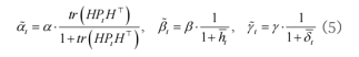 延迟权重随观测不确定度上升而提高,能耗权重随业务热度上升而下降,成本权重随网络拥塞上升而下降。记观测协方差Pt,观测矩阵H,残差强度以tr(HPtH T)表征,全局热度均值网络时延归一化量δt。时变权重定义如式(5)所示: