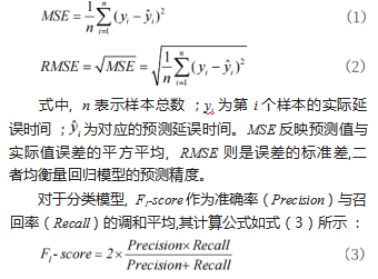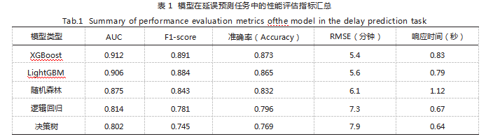 结合分类与回归两类任务维度,设置若干质量指标进行横向对比,模型在延误预测任务中的性能评估指标汇总如表1所示。