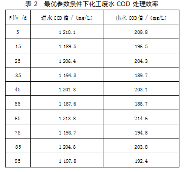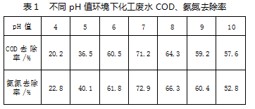 由表1可知,中性环境(pH值为6.5~7.5)能让活性污泥微生物充分发挥降解污染物的能力。实际处理化工废水时,将pH值调控在此区间范围内,可以高效去除COD和氨氮。