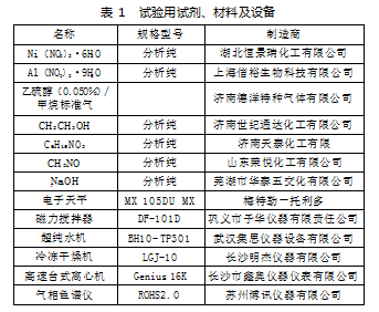 为了保护环境,提高天然气燃烧效率,降低管道腐蚀,研究提出了一种基于Ni-Al-LDH纳米片的天然气脱硫方法。试验所需试剂、材料及设备如表1所示。