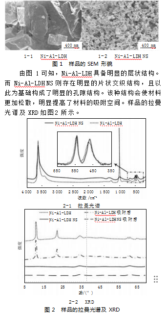 为了验证研究提出的Ni-Al-LDH NS的天然气脱硫性能,对其进行测试,并与Ni-Al-LDH进行比较。样品的SEM图如图1所示。
