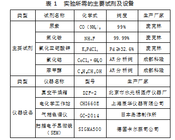 实验所需的主要试剂及设备,如表1所示。