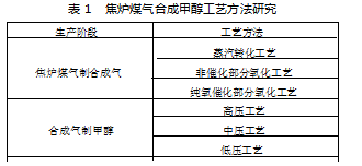 1.3焦炉煤气合成甲醇工艺方法研究