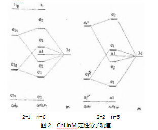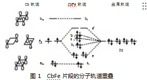 CbFe(CO)3的电子结构具有独特之处:一是Cb的eg能级与Fe的3d能级接近,能大量混合。二是Fe(0)具有8个价电子,不需要占用金属-环的反键轨道。三是羰基的几何结构有利于金属与CO形成良好的反馈π键。基于此理论,可以对另外两种Cb-金属配合物进行性质预测。