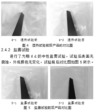 进行了为期6 d的湿热试验,试验后表面无腐蚀,颜色无明显变化,试验前后对比图如图4所示。