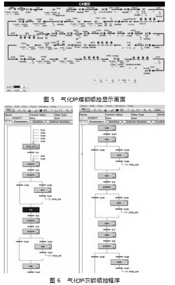 4)设计参数可变:煤锁、灰锁控制的顺控中涉及诸多参数,如:计时设定、工况压力、工况温度等,都需要在运行过程中根据实际工况进行适当的调整,故在DCS操作画面中设置了相应的参数修改功能,可进行参数在线修改。同时在DCS操作主画面实时显示当前程序的运行状态,以便操作工及时了解气化炉工况。
