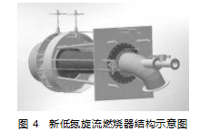 该厂2台机组燃烧器配备的为三井巴布科克公司生产的低NOx轴流式燃烧器,采用前、后墙各三层的布置方式,每层布置5只燃烧器,共计30只燃烧器。前墙下层采用等离子点火燃烧器,其余五层燃烧器全部为常规运行低氮旋流燃烧器。然而,炉膛出口的氮氧化物排放量依然居高不下,尤其在满负荷运行状态下,其质量浓度超过了600 mg/m3。鉴于脱硝反应器的设计初衷是基于2014年7月1日前国家排放标准,即氮氧化物排放质量浓度限值为100 mg/m3。自2014年7月1日起,该排放限值进一步下调至50 mg/m3。因此,为了达到新的排放标准,必须增加SCR(选择性催化还原)反应器的喷氨量,但这一做法已经超出了SCR反应器的设计处理能力,导致氨逃逸问题难以得到有效控制。根据对同类型机组的调研结果,在不提升SCR反应器处理能力的前提下,降低反应器入口氮氧化物含量成为必要措施。基于此,我厂决定对两台机组的燃烧器进行技术改造。将原有的燃烧器更换为新型LYSC-IV型低氮燃烧器。这种新型燃烧器在燃烧组织方面需要重点强化二次风对一次风的包裹,建立合理的环形回流区,做到“风包粉”的燃烧组织形式,具备良好的调整性能,可以解决目前降低火焰中心温度以达到降低氮氧化物的目的。新型低氮燃烧器,见图4(图片出自燃烧器厂家)。