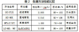 在水中挥发酚检测方法研究持续推进的阶段里,色谱分析法占有重要份额,该方法呈现出高灵敏度、高选择性和高分辨率等良好特性,广泛应用于环境监测以及工业废水处理等领域,如表2所示。某家检测机构借助EPAMethod8041色谱分析法测定焦化废水中挥发酚的含量,结果显示,13种酚类加标回收率达到95.6%±3.2%,证实该方法对于挥发酚的检测有较高的准确性与可靠性。