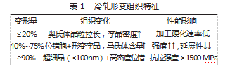 冷轧工艺通过剧烈拉长、压扁的加工硬化,其组织性能会出现明显变化,如表1所示。