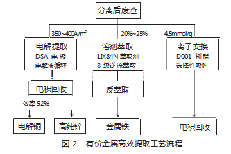 有价金属高效提取工艺运用电解法和溶剂萃取联合技术,以此实现铜、锌等金属的选择性分离回收,如2所示。