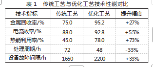 优化后的多级物理分离技术,使金属回收率从75%提升到95.2%,电解法使电流效率从88%增加至92.8%,热能回收系统的利用率从45%提高到78%,单位能耗降低30%。多元素协同回收工艺实现了铜锌铁同步提取,稀有金属回收率达到85.3%,设备平均故障间隔时间延长至2200h,维护成本降低25%,处理周期从72h缩短到了48h。