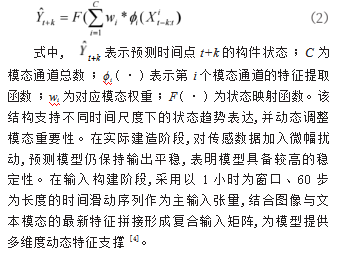 多源巡检数据在时间、模态与结构上存在不规则性与异步性,需构建具备时序记忆能力与模态融合能力的预测模型结构。模型核心以多通道LSTM结构为主体,分别处理不同模态的数据输入,构建具有门控机制的状态传播路径。传感通道输入保持原始时序结构,图像通道经卷积压缩后输入辅助网络层,文本通道嵌入后引入注意力机制提取关键语义位点。状态预测输出函数如式(2)所示: