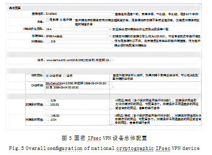 为保持原有网络设备的路由协议配置与架构不变,经多次验证,国密IPSec VPN设备使用桥接/透传方式(不修改源、目的地址),通过同子网转发机制实现其透传式隧道部署。