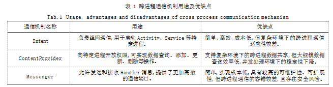数据采集与分析功能主要包括数据采集与分析两个模块。数据采集模块主要依托跨进程通信(Inter-Process Communication,IPC)实现不同应用程序之间的数据采集与传输,可以采用Intent、ContentProvider、Mess enger等通信机制,各通信机制的用途存在较大差异,在优缺点方面也能够互为补充[3]。为保证数据采集效率,以及避免部分手机应用程序自我保护机制造成数据分析结果与实际情况的偏离,需要实时监控跨进程通信机制的响应情况。