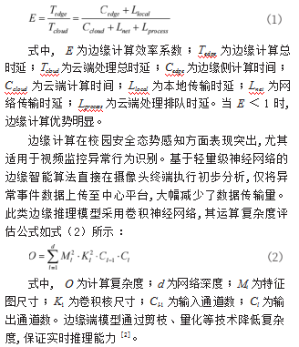 智慧校园边缘计算系统将数据处理能力部署至网络边缘,降低核心服务器负载,减少数据传输延迟。边缘节点直接处理校园内分布式传感器采集的实时数据,包括人流密度、环境参数、设备状态等信息,实现毫秒级响应。校园边缘计算效率评估模型可表述为边缘处理时延与云端处理时延比值,如式(1)所示: