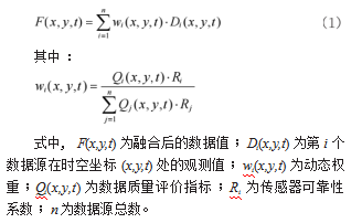 为量化不同数据源在融合过程中的影响权重,并提升融合结果的鲁棒性,本文构建了加权融合模型,融合计算公式如式(1)所示: