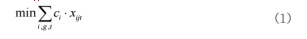 模型以最小化运营成本与最大化排班效率为目标,构建双目标函数组合。设每架飞机执行航班i所产生的成本为ci,则成本目标函数如式(1)所示: