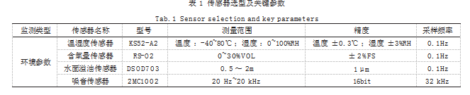 传感器选型以“高精度、高可靠性、适配工业环境”为核心原则[6]。具体设备参数如表1所示。