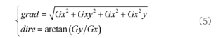 式中,grad为图像滤波处理后得到的梯度幅值,反映图像中像素点在各个方向变化的剧烈程度;Gx、Gxy、Gy、Gyx分别为x、xy、y、yx4个方向上的一阶梯度分量;dire为图像滤波处理后得到的梯度方向,表征图像中某一点的边缘方向,其角度范围在-τ/2~τ/2之间。